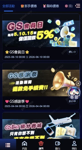 在GSBET娛樂城(極速娛樂城),玩家不僅可以享受到豐富多元的遊戲、從真人百家樂、電子遊戲、即時體育及場中投注、電競下注及各類彩券等,還能體驗到最貼心的服務與優惠,這裡絕對是您休閒娛樂、挑戰運氣的最佳場所!我們的首頁設計簡潔直觀,從網頁端介面到iOS以及Android系統專屬APP應用。讓每位玩家都能輕鬆找到自己喜愛的遊戲,並享受快速註冊、極速回饋等一站式服務。